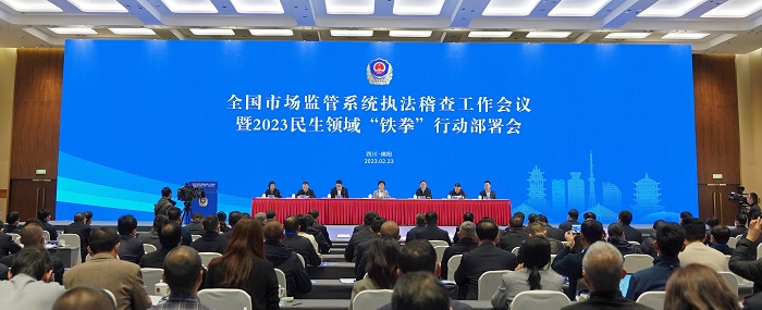 - 全國市場監(jiān)管系統(tǒng)執(zhí)法稽查工作暨2023民... 2月23日,全國市場監(jiān)管系統(tǒng)執(zhí)法稽查工作會(huì)議暨2023民生領(lǐng)域“鐵拳”行動(dòng)部署會(huì)在四川省綿陽市舉行。會(huì)議全面貫徹黨的二十大精神,深入落實(shí)全國市場監(jiān)管工作會(huì)議部署...